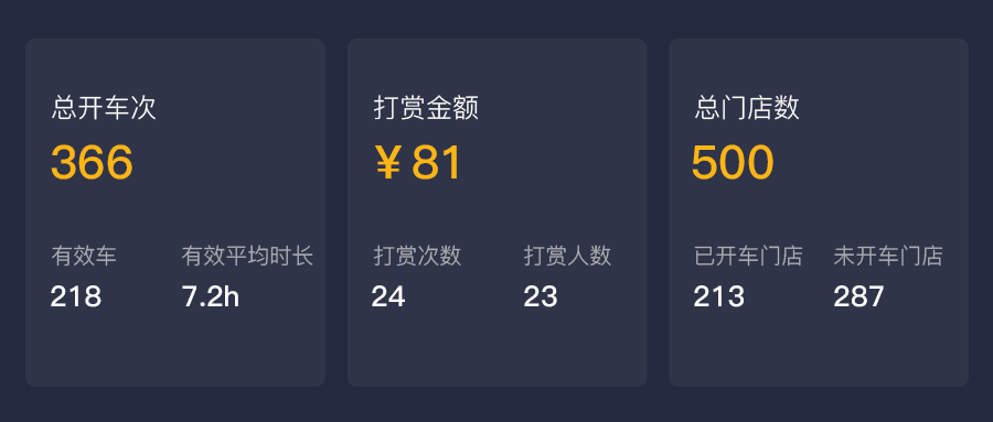 截止到发稿前,已有213家门店开本,共开车366次,平均时长7.2h(存在一部分店家开完本之后未及时点击结束房间的情况)。