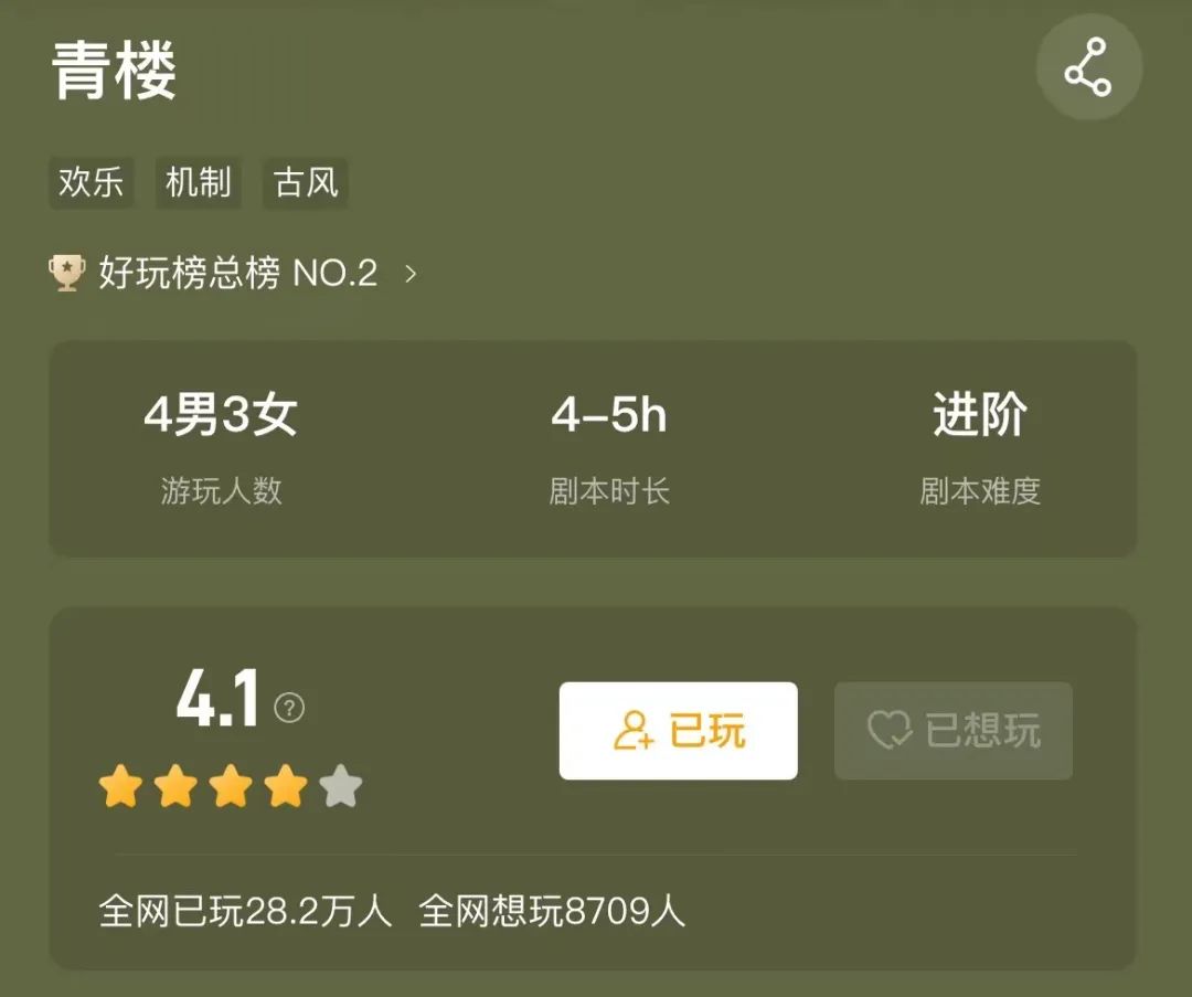 西昆仑工作室:目前剧本杀行业正在迈向更多人群,《青楼》之名会让很多觉得好像不太正经,但其实并没有。《青楼》的背景是在唐朝年代,那个年代的青楼只是卖艺的地方。为了整个剧本杀行业的环境,所以我们备案了。