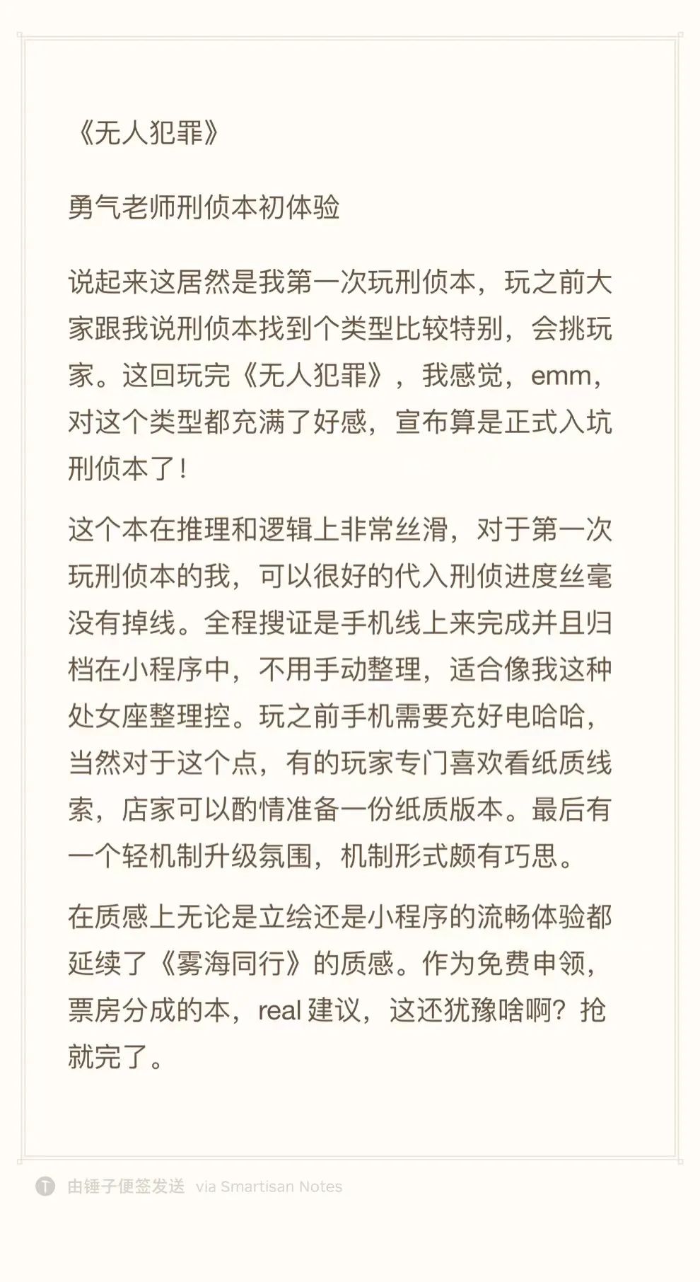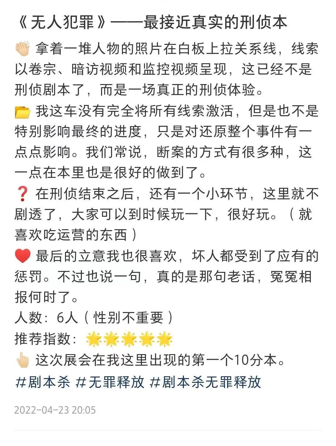 无论是推理还是机制,玩家全程在线,并且在整局剧本游戏结束之后心里觉得这5个小时没有浪费,我就很开心了。