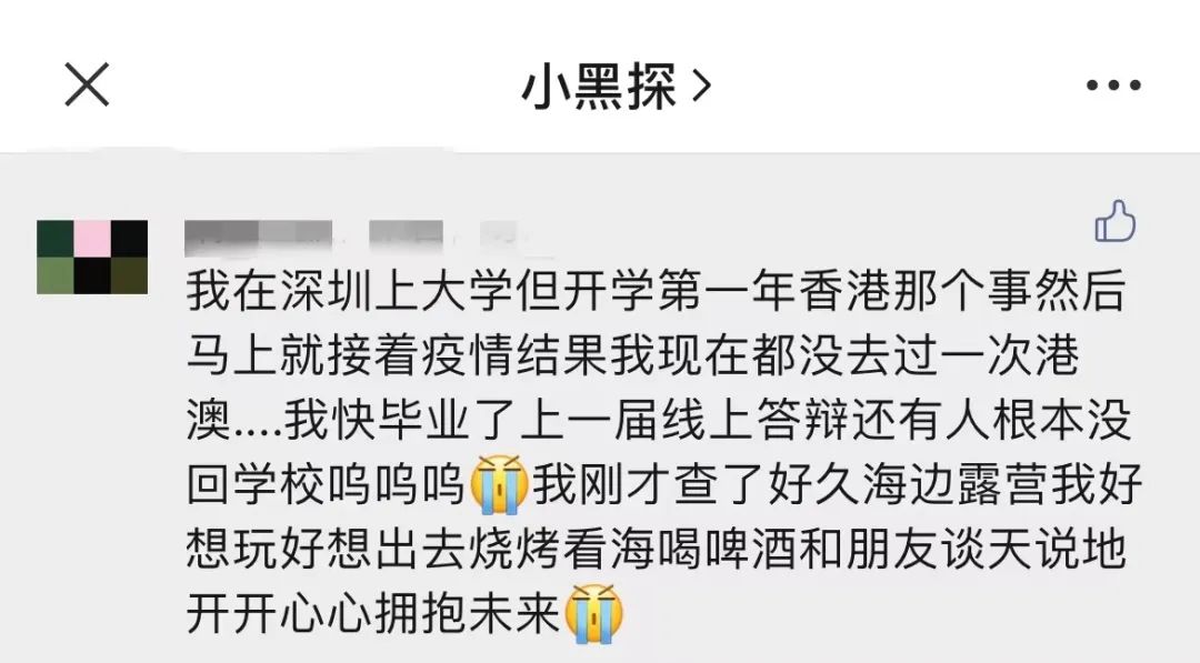 秋禾:有,首先从学习层面上来讲,我的专业是旅游,自从疫情来之后对整个专业的打击很大。大一来的时候还想着当香港代购,结果三年大学一半在家一半关在学校。航海课没了、交换生没了、品酒课品茶课赛博品鉴、公关课只能调研食堂。