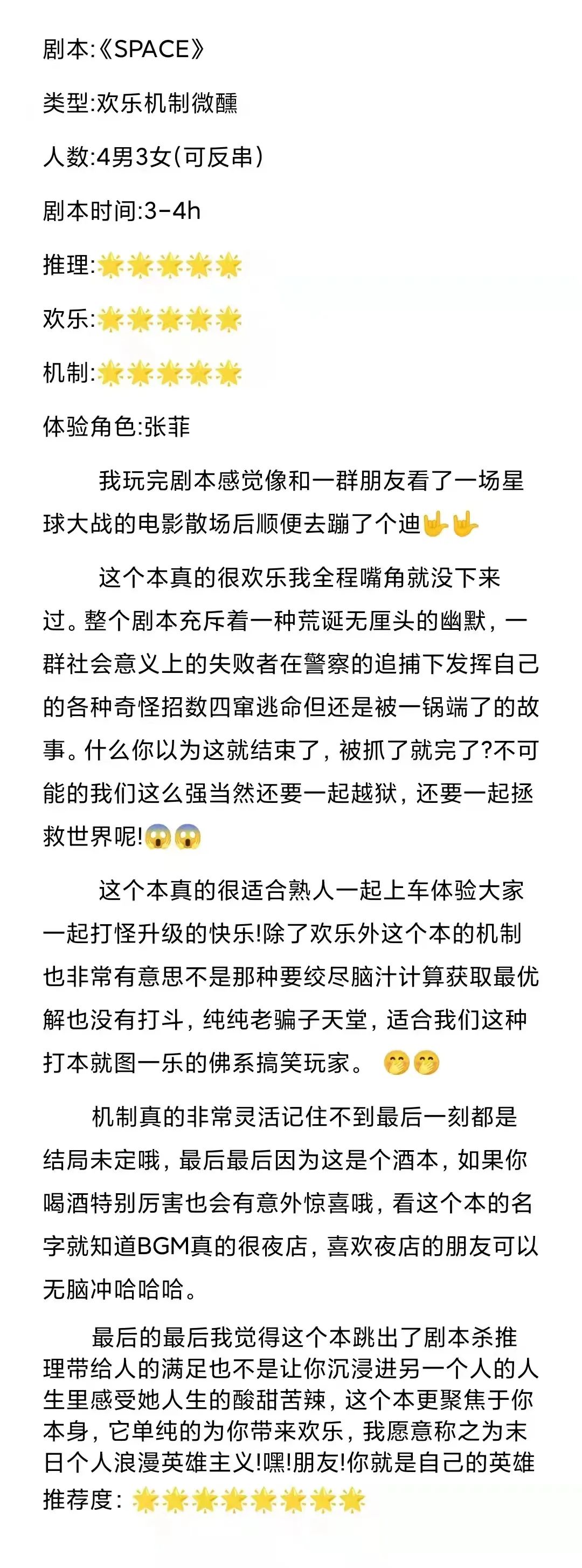 剧本会涉及酒水,整体非常哈皮,适合聚会,熟人车,各个类型玩家体验。
