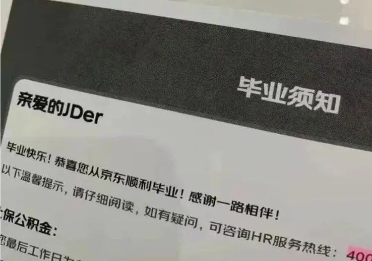 “毕业快乐。恭喜你从公司顺利毕业!感谢一路陪伴!”这是京东近期发布的一份致被裁员工的“毕业须知”。