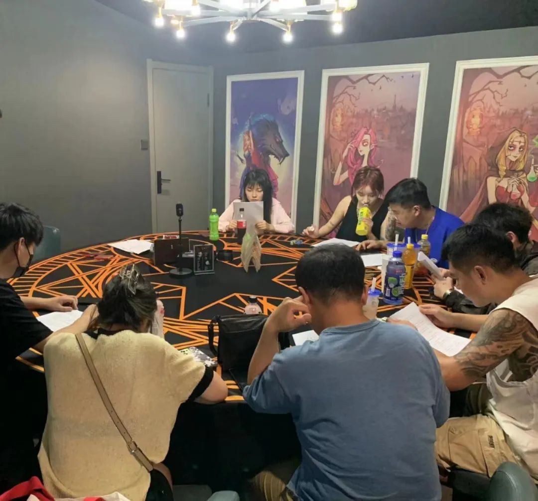 A:关于这件事可有得聊了,玩家们“该死”的胜负欲每次都会让气氛十分热烈,或许是我擅长烘托和调动玩家的气氛,他们大多都深入地带入了自己的角色,整场下来嬉笑怒骂声不绝于耳,也时常出现“兄弟反目”,“闺蜜决裂”的情况。为了“维持秩序”,我也会时不时地被带入人物的玩家们“误伤”,可我丝毫不觉得这是件坏事,至少我的作品能够让玩家沉浸其中,就冲这一点,我挨多少“大必斗”,都值了!其次就是要感谢提供了场地和DM视角建议的剧本店家们,如果没有各位的全力支持,《下岗》的创作可能不会那么顺利。在这里,我再一次对这些店家朋友们表示感谢!