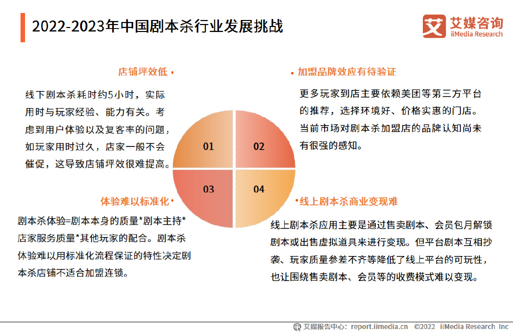 虽然剧本杀市场进入一个风口期,但是剧本杀线上应用和线下门店的运营都面临着一些不可避免的挑战,比如线下门店店铺坪效低、体验难以标准化、加盟品牌效应有待验证等等。