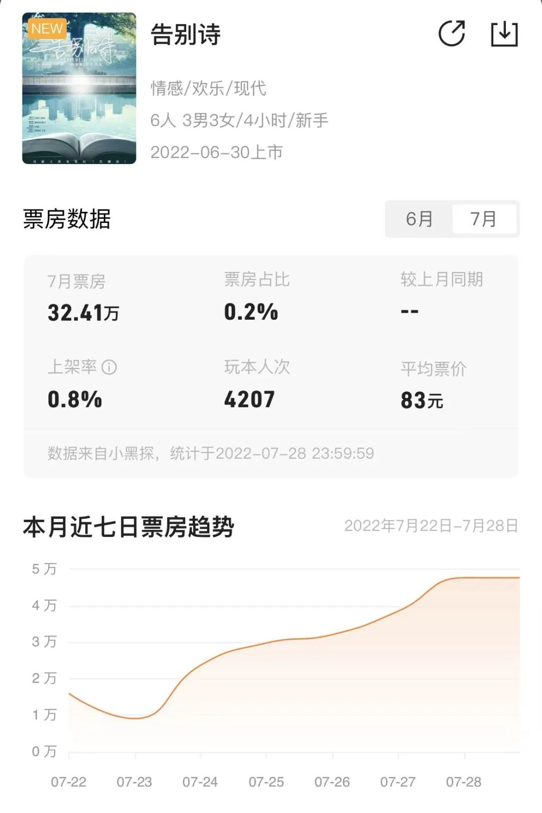 来看看D&M月影工作室六月底刚刚发售的欢乐情感本,《告别诗》。截止发文前,它在「黑探有品」平台已成交503单,累计浏览量达21509次。