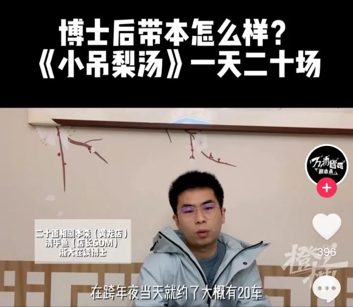 今年元旦,由店里一位博士后成员重新二创的《小吊梨汤》火了,当天有20车(一车即同一场打本)的人纷纷打电话说想来体验。但最终,为了让玩家体验感更好,博士们还是只接待了一车人。