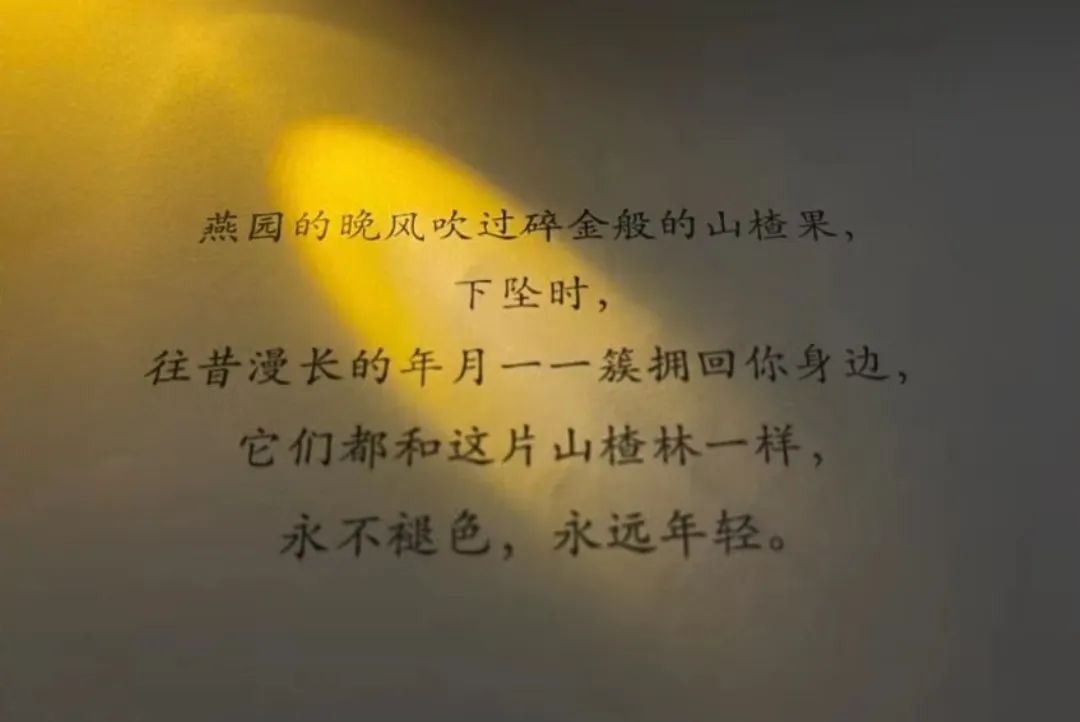 燕园的晚风吹过碎金般的山楂果,下坠时,往昔漫长的年月一一簇拥回你身边,它们都和这片山楂林一样,永不褪色,永远年轻。
