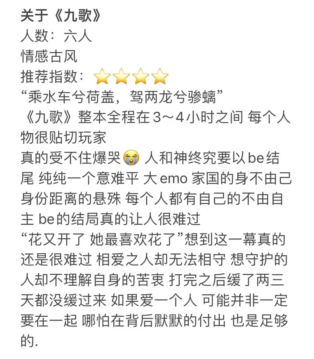 《九歌》每个人物很贴切玩家,真的受不住爆哭,人和神终究要以be结尾。