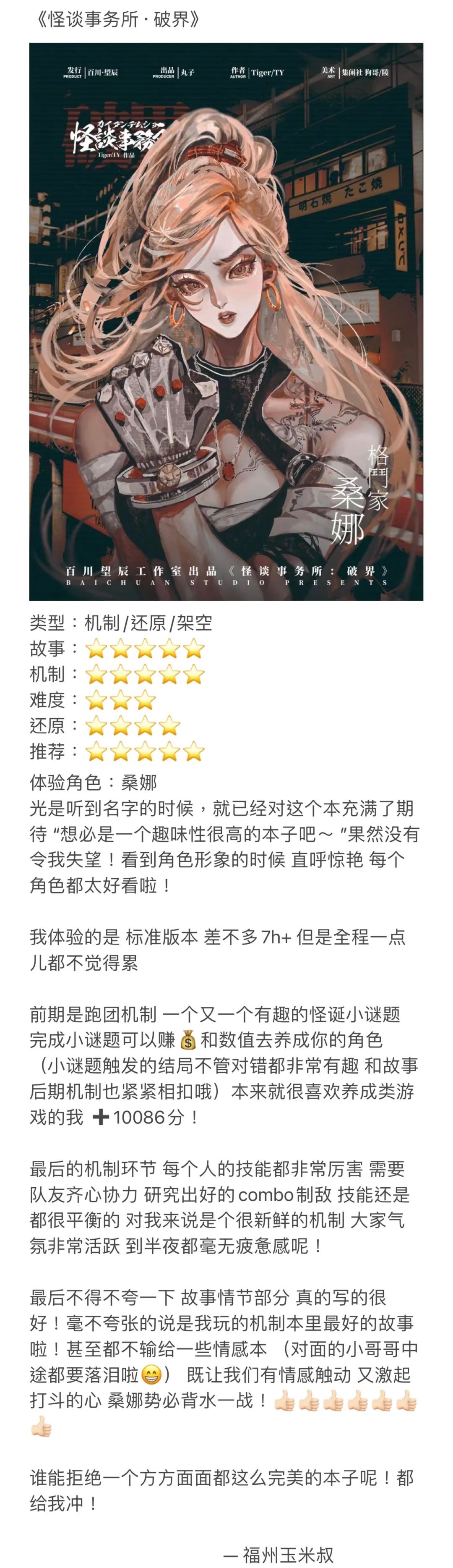 最后,其实我很感动玩家能够在机制厮杀过后,会对剧情本身有所触动。因为这是一个纯机制本,故事方面我们虽然铺垫很多,但已经做好了玩家根本不在意剧情的心理准备。