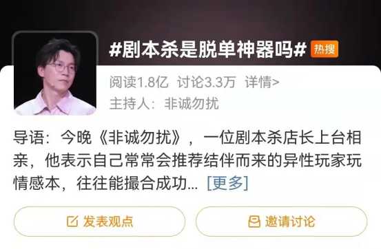 进一步让更多人体验到剧本杀,并登上微博热搜,话题突破3亿阅读量。