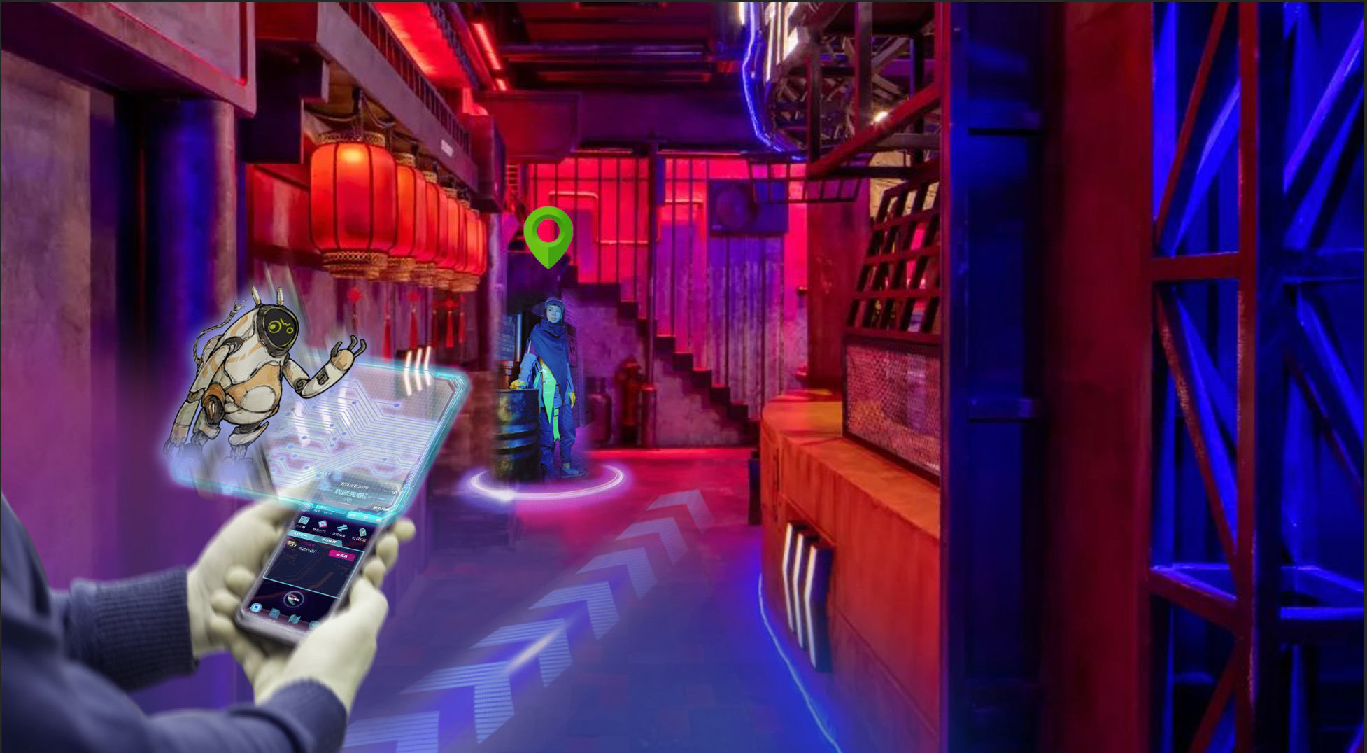 根据场地原本的赛博朋克场景风格而打造的硬科技主题故事;