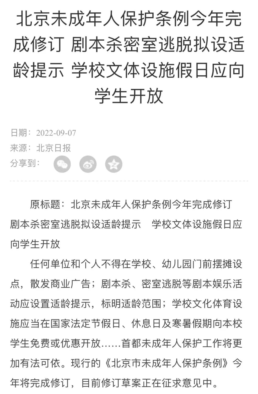 北京修订未成年保护条例,剧本娱乐将纳入规范管理